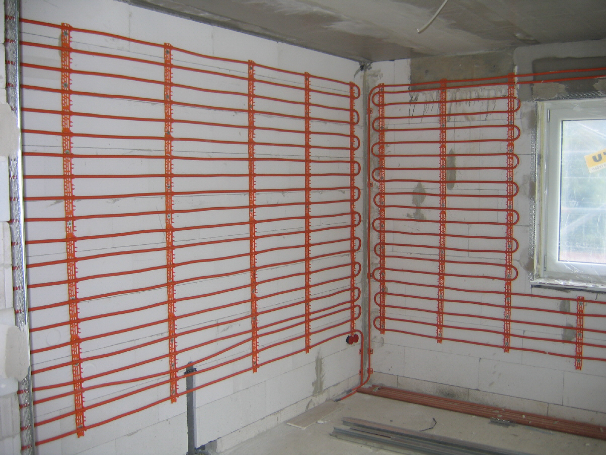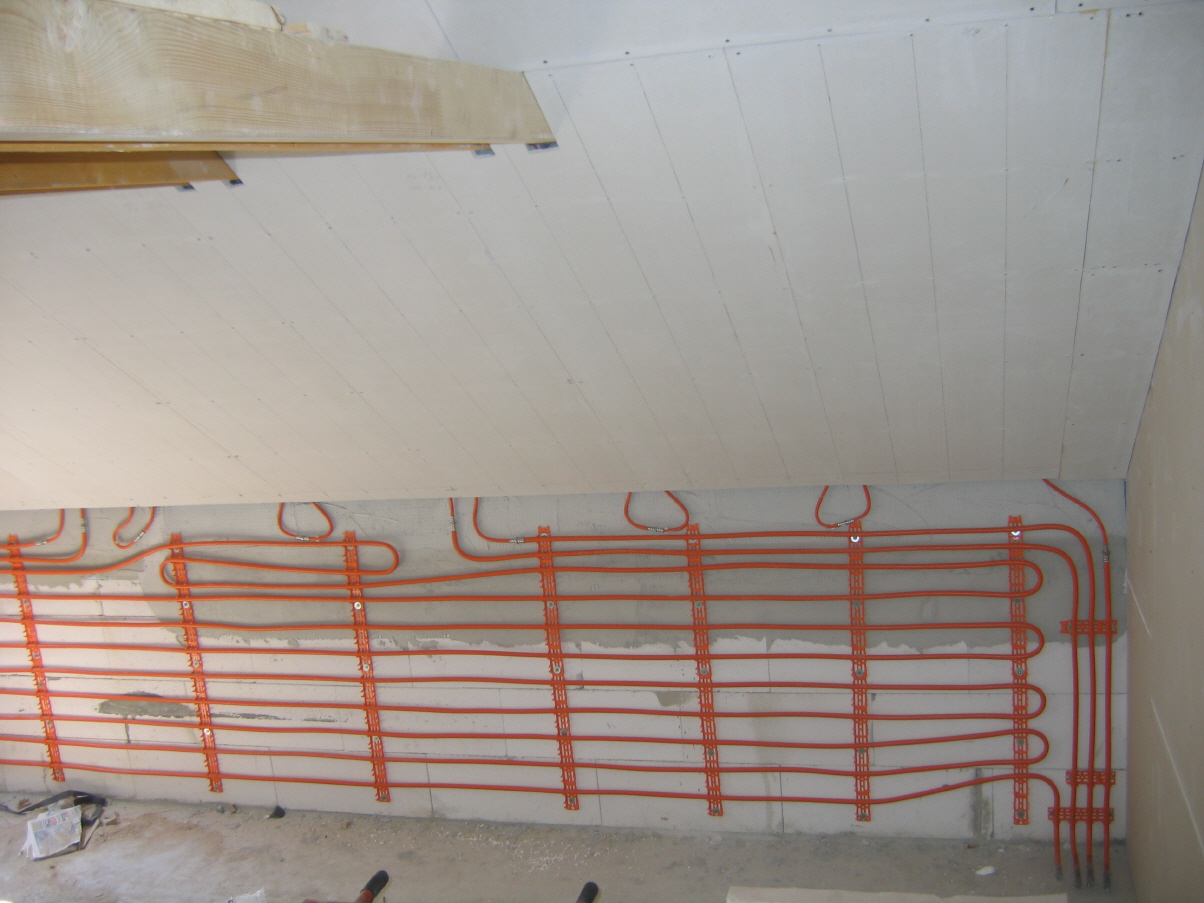 Die System-Wandheizung für den verputzten Ausbau wurde an nahezu allen Außenwänden installiert.
