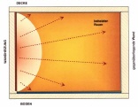 Deckenheizungen haben eine deutlich bessere Wärmestrahlungsabgabe als herkömmliche Heizkörper - aufgrund der resultierenden grossen Flächennutzung des Heizsystems ist die notwendige Oberflächentemperatur und die niedrigeren Temperaturen des Heizwassers niedriger.
