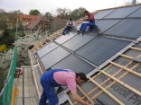 Die Solaranlage wurde während der Dacheindeckung montiert. Hier konnte der bauseits vorhandene Kran verwendet werden. Dadurch wurde die Anlage von 3 Personen