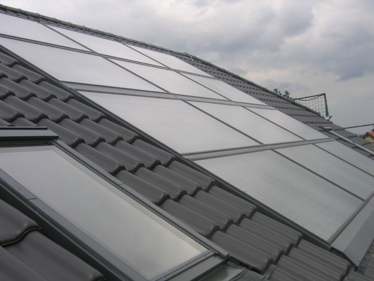Das Solardach ist fertig in das Dach des Hauses integriert und mit den Abdeckblechen versehen. Die Anlage wirkt dezent und nicht übermäßig auffällig.
